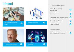 Online magazine met aandacht voor onder meer de NVGA AM Innovatieprijs, digitaal aanvragen van financiële producten, pensioencommunicatie en HR & data.